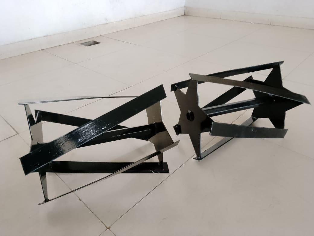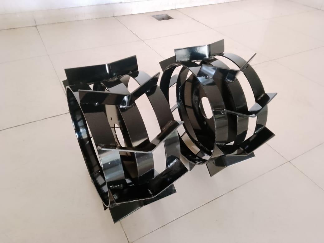 There are 2 types of cage wheels and come in useful for grip and clearing weeds. The rotavator wheel comes with the power weeder and extension and till a width of 12m. The other implants are 17 in number and efforts are being made.